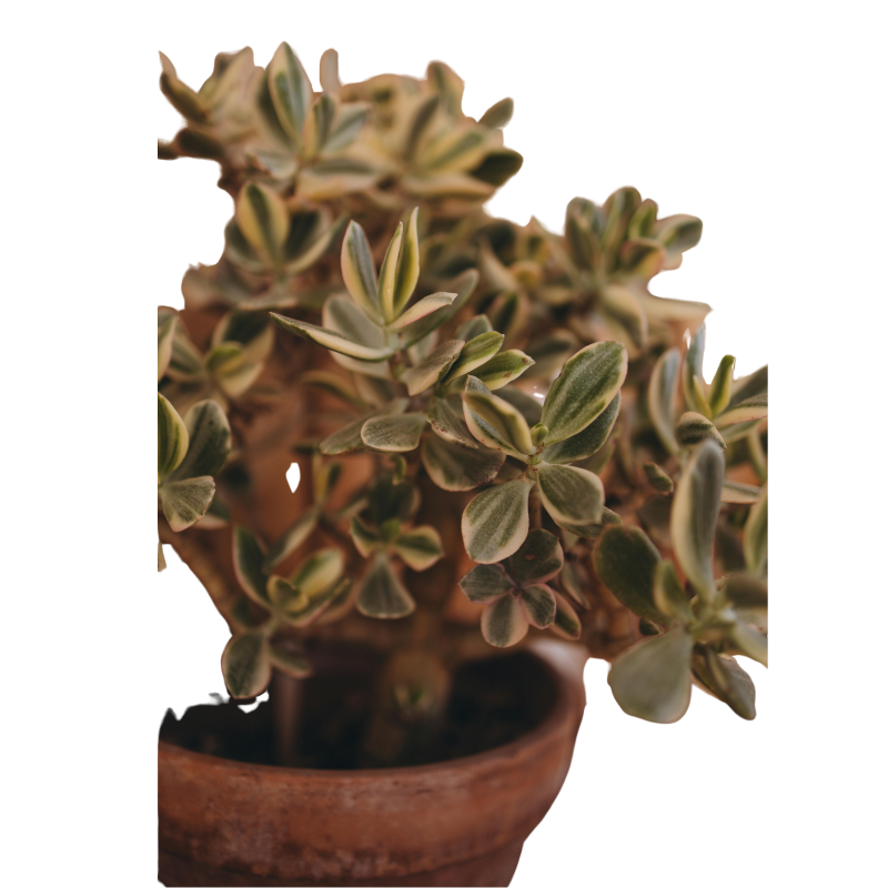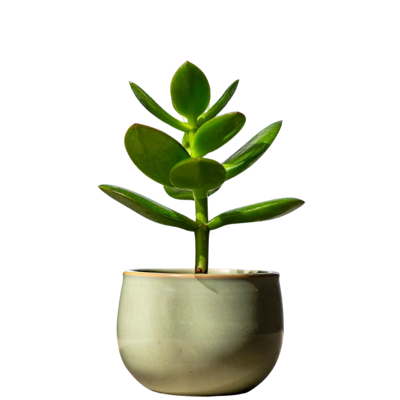 A low-maintenance succulent also known as the “Good Luck Plant.” Its thick green leaves symbolize prosperity and make it a perfect indoor decorative plant.